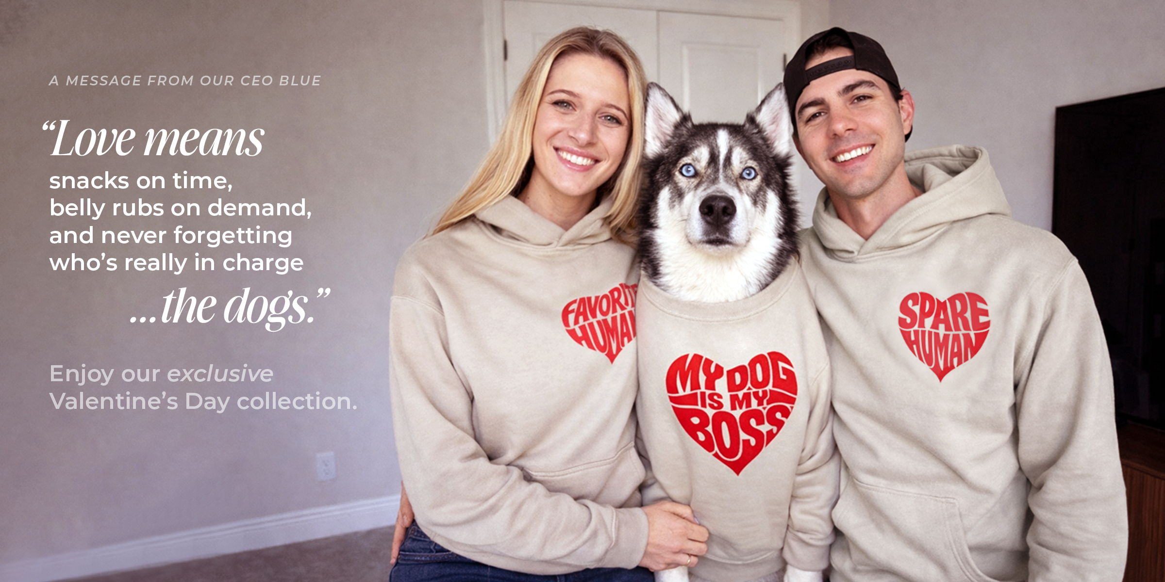 V-Day Edition My Dog Is My Boss Hoodie - Sand